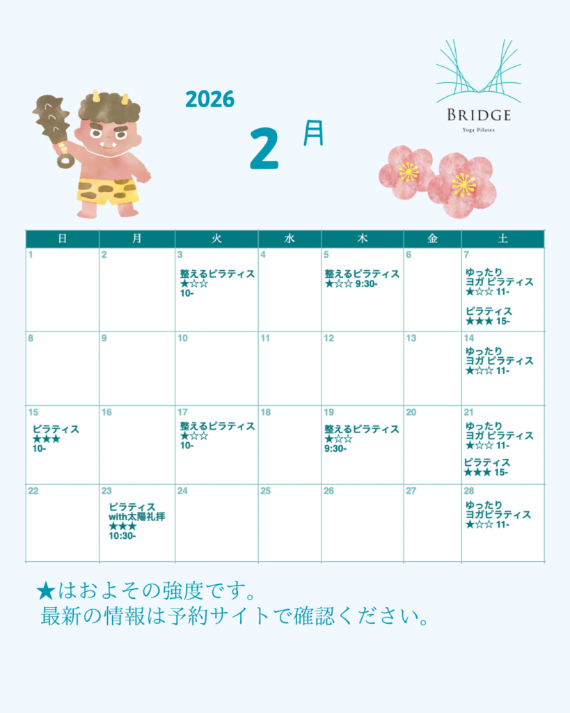 いつも Bridge Yoga Pilates をご利用いただき、ありがとうございます。
