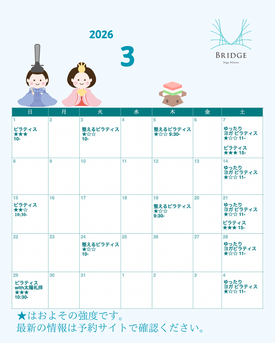 3月のグループクラス、スケジュールを公開しました。