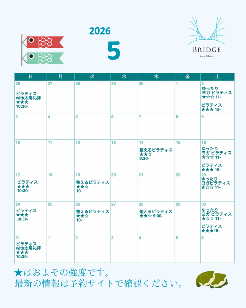5月は連休などでお休みが多くなりますが、しっかり休んだあとは、ご自身の身体と静かに向き合うひとときを、ぜひ Bridge でお過ごしください✨